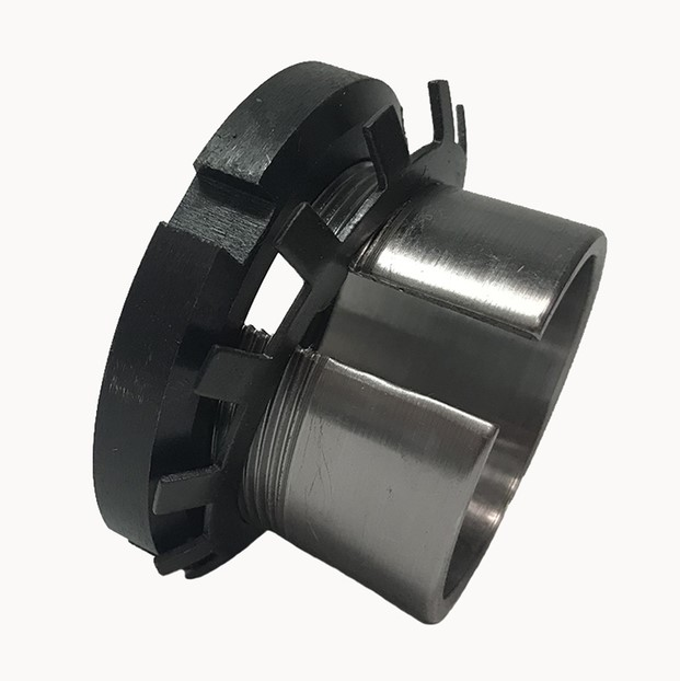 Конічні перехідні втулки для монтажу підшипників із конічним отвором на циліндричний вал. що комплектуються стопорною гайкою та фіксуючою шайбою. Виготовляються зі сталей підвищеної міцності з термічною обробкою. мають точно оброблену конічну поверхню та різьбу для регулювання посадочного натягу. Забезпечують щільну посадку підшипника на вал без необхідності застосування пресової посадки. дозволяють регулювати радіальний зазор у підшипнику та спрощують його монтаж і демонтаж. Використовуються з підшипниками сферичних роликових і самоустановних кулькових серій. Призначаються для промислових. енергетичних. транспортних і сільськогосподарських приводів. де необхідні висока точність центрування. можливість регулювання натягу та надійне кріплення підшипника на гладкому валу.