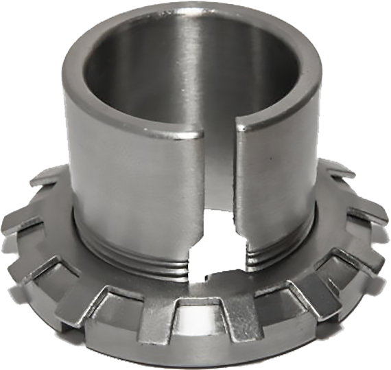 Конічні перехідні втулки для монтажу підшипників із конічним отвором на циліндричний вал. що комплектуються стопорною гайкою та фіксуючою шайбою. Виготовляються зі сталей підвищеної міцності з термічною обробкою. мають точно оброблену конічну поверхню та різьбу для регулювання посадочного натягу. Забезпечують щільну посадку підшипника на вал без необхідності застосування пресової посадки. дозволяють регулювати радіальний зазор у підшипнику та спрощують його монтаж і демонтаж. Використовуються з підшипниками сферичних роликових і самоустановних кулькових серій. Призначаються для промислових. енергетичних. транспортних і сільськогосподарських приводів. де необхідні висока точність центрування. можливість регулювання натягу та надійне кріплення підшипника на гладкому валу.