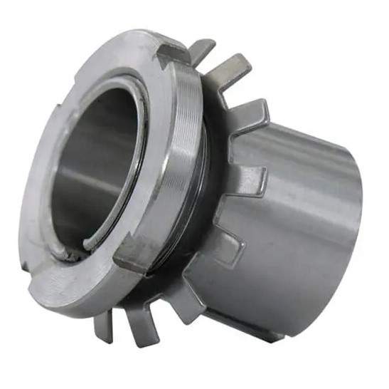 Конічні перехідні втулки для монтажу підшипників із конічним отвором на циліндричний вал. що комплектуються стопорною гайкою та фіксуючою шайбою. Виготовляються зі сталей підвищеної міцності з термічною обробкою. мають точно оброблену конічну поверхню та різьбу для регулювання посадочного натягу. Забезпечують щільну посадку підшипника на вал без необхідності застосування пресової посадки. дозволяють регулювати радіальний зазор у підшипнику та спрощують його монтаж і демонтаж. Використовуються з підшипниками сферичних роликових і самоустановних кулькових серій. Призначаються для промислових. енергетичних. транспортних і сільськогосподарських приводів. де необхідні висока точність центрування. можливість регулювання натягу та надійне кріплення підшипника на гладкому валу.